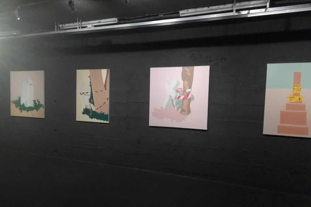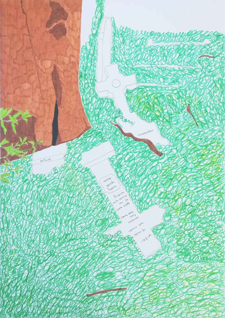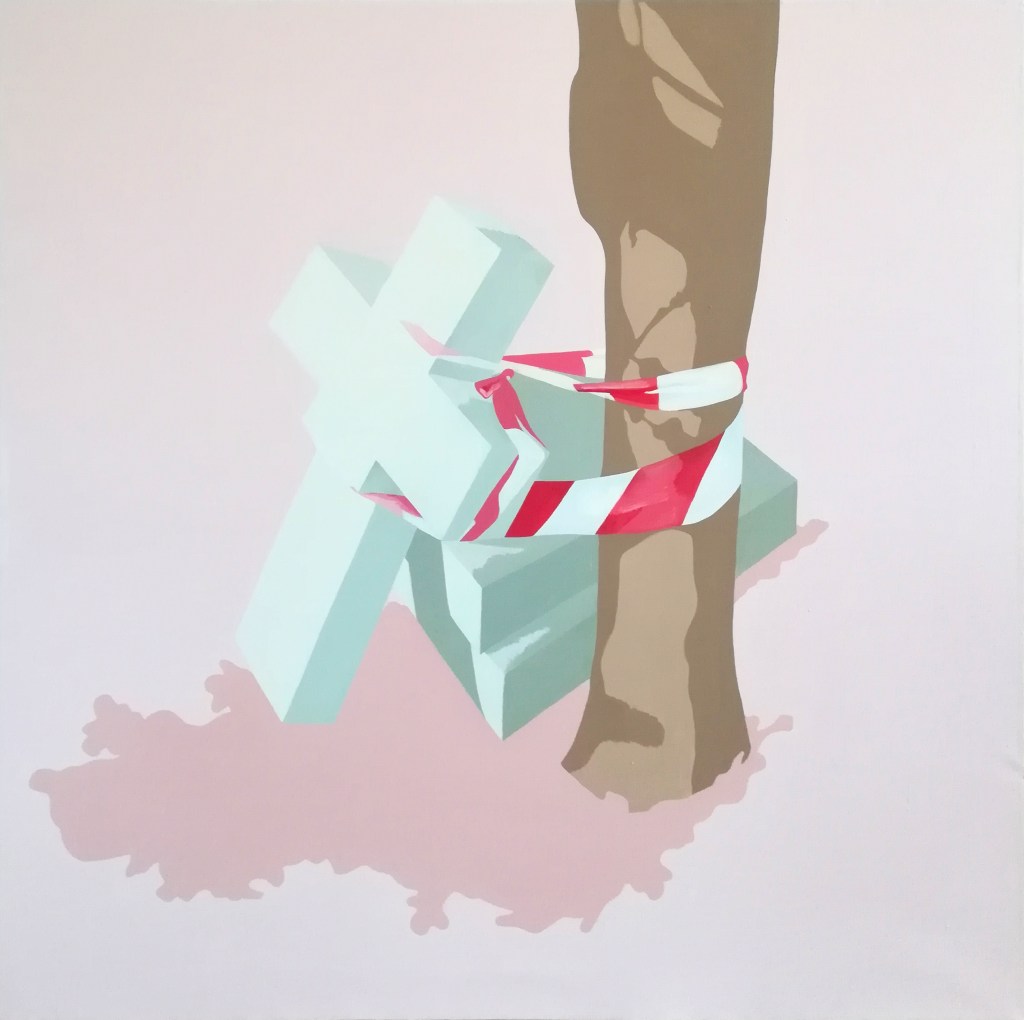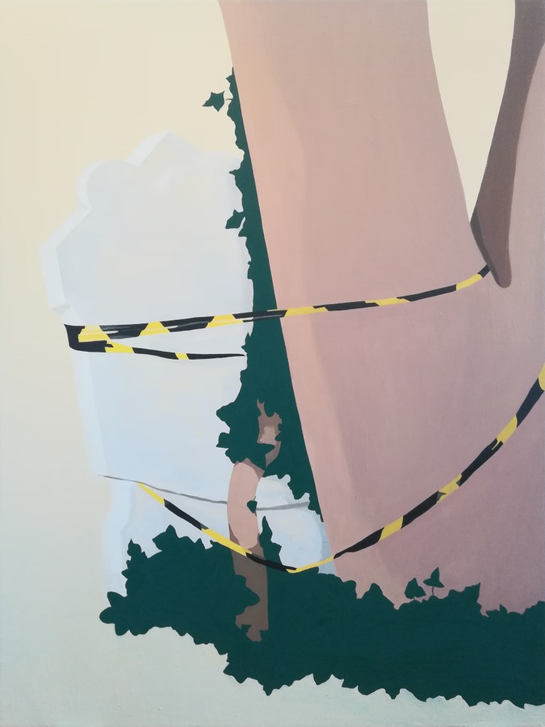 Highgate Cemetery. A place that has been on my mind for years. It was built in the victorian era, outside the city of London. Since then, London has grown all around it, and now it became a sanctuary in the middle of a buzzing city. My paintings, drawings, and the weaving are based on my walks in the West part of the cemetery. In these works, two ways of existence are represented, in constant contradiction, and yet entanglement with one another.